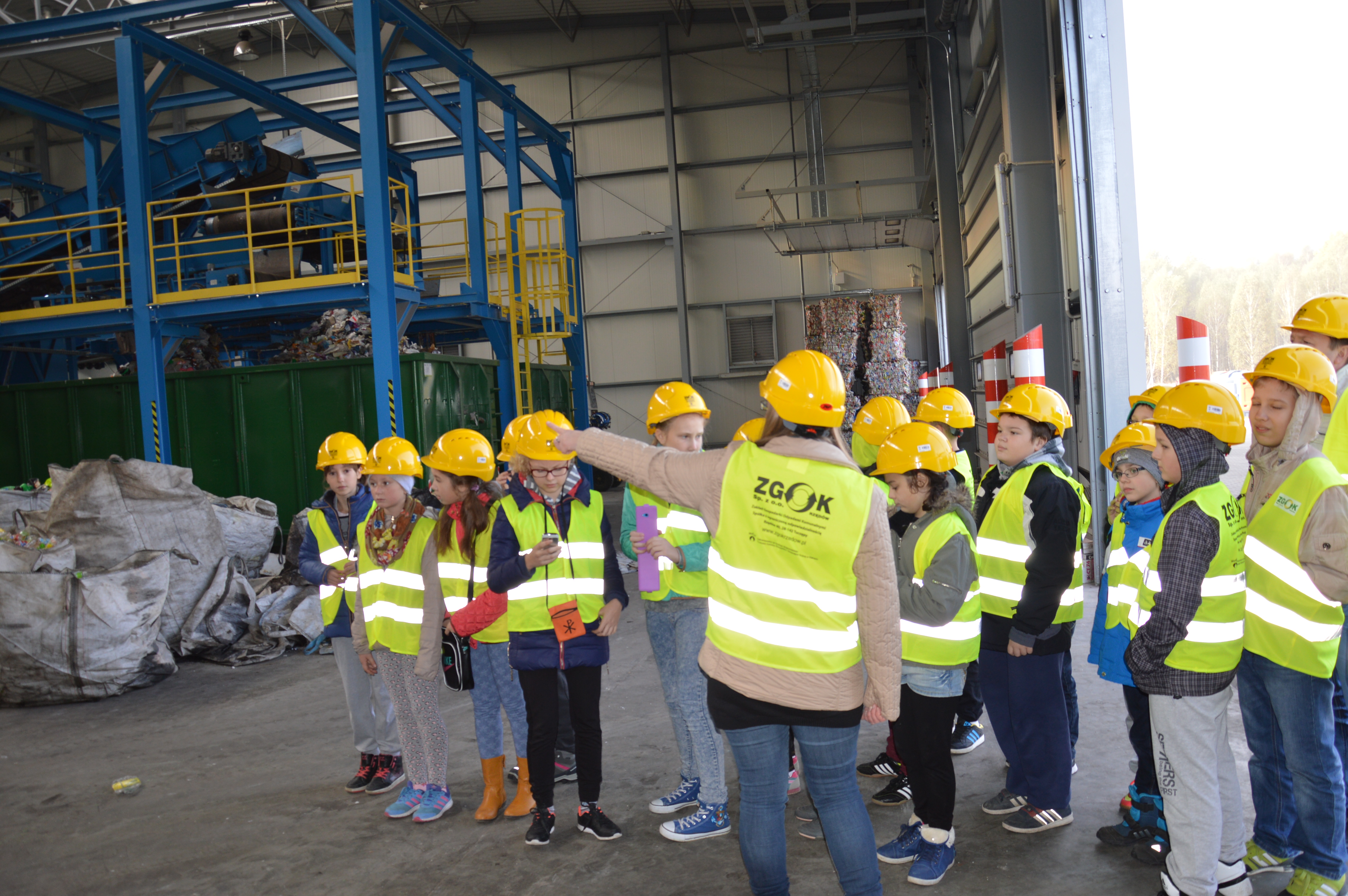 a później w ramach praktyki sami segregowali "śmieci" umieszczając je w odpowiednich pojemnikach. Na zakończenie zwiedzili Zakład sprawdzając w jaki sposób odpady są przygotowywane do dalszego procesu przetworzenia.