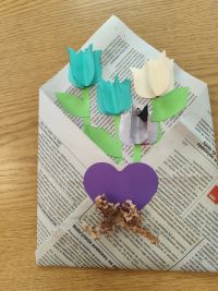 Uczniowie z 4 klasy Szkoły Podstawowej w Tuczępach wykonali zajączki i kartki wielkanocne z odpadów ![]()
